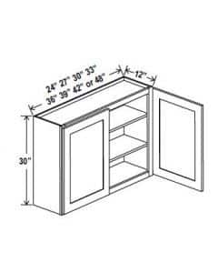 Shaker Pure White – Wall Cabinet Double Door – 30″W X 30″H X 12″D With 2 Door And 2 Shelf