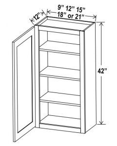 Shaker Pure White – Wall Cabinet Single Door – 9″W X 42″H X 12″D With 1 Door And 3 Shelf